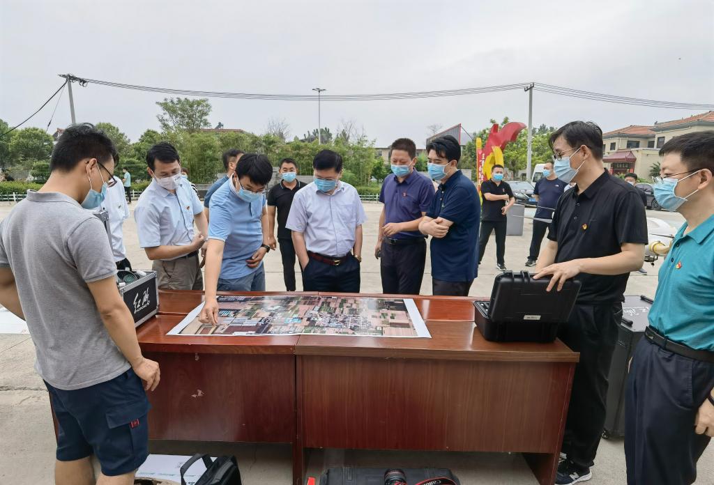 本次党日活动利用华测P330pro垂起固定翼无人机航测平台,开展无人机低空航空摄影测量工作,获取覆盖南朱营村的全部正射和倾斜影像,建立南朱营村正射底图和三维模型,并在此基础上,开展南朱营村水系测绘和地势分析,为南朱营村科学开展防汛减灾工作提供精准测绘数据。