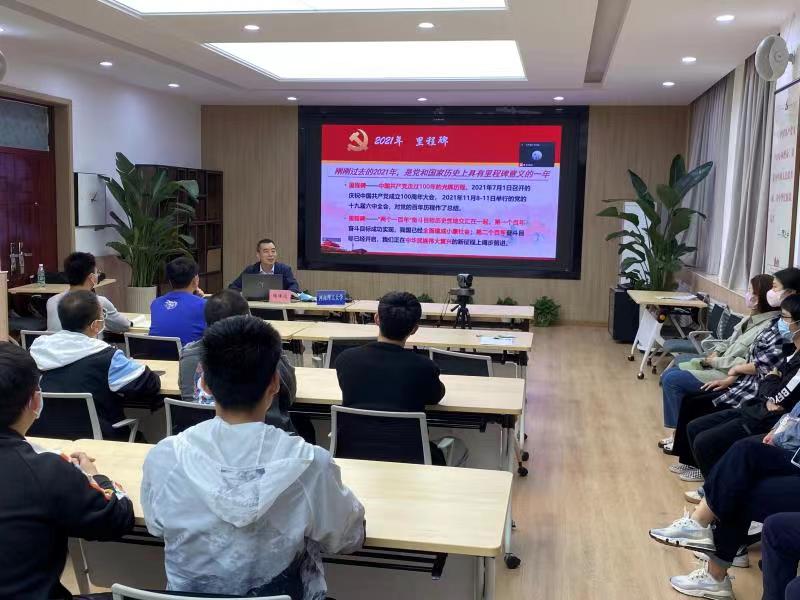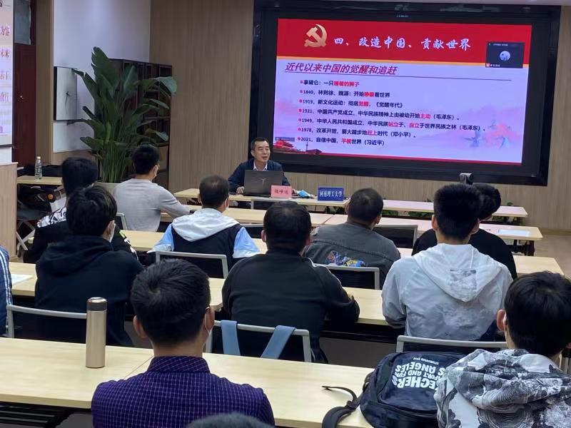院长魏峰远在学院二楼会议室为研究生生讲授题为《领会新决议精神,争创“双一流”学科----学习贯彻十九届六中全会精神》思政课,讲授采用线上线下结合方式,2021级全体研究生参加学习。