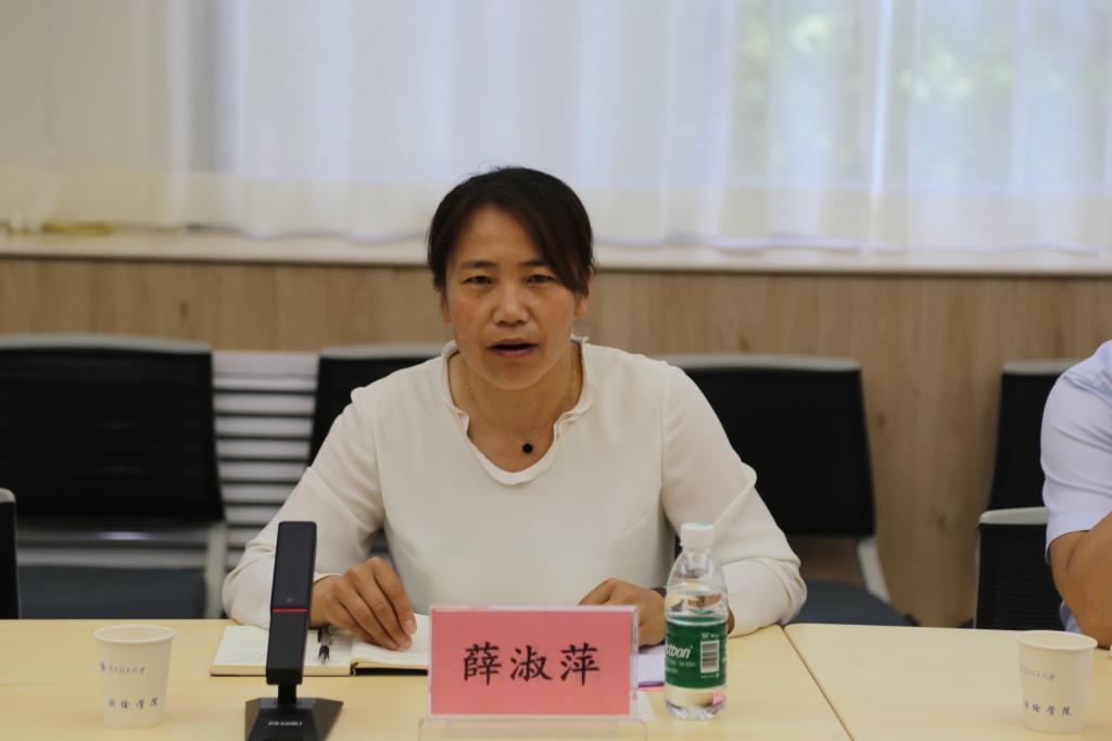二楼会议室举行,茹艳首先代表学院向薛淑萍一行的到来表示欢迎,同时围绕办学特色、师资队伍、本科教学、人才培养、学科建设等几个方面介绍了学院的发展情况。