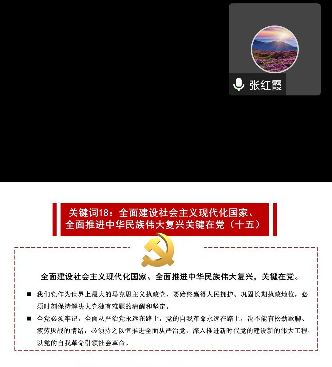 “青马工程”培训班专题党课暨2022级团干培训于线上召开,院党委书记张红霞老师、院第十二期青马培训班全体学员、2022级团干及学院团委综合办公室全体成员共计100余人参加培训,会议由院团委秘书处干事王艳茜主持。