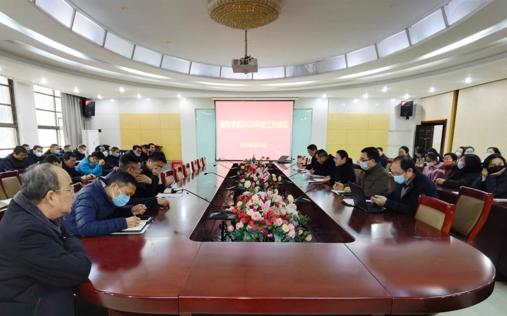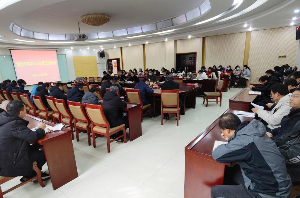 2023年度工作会议在学院一楼会议室召开,全院教职工参加会议。会议由学院党委书记张红霞主持。