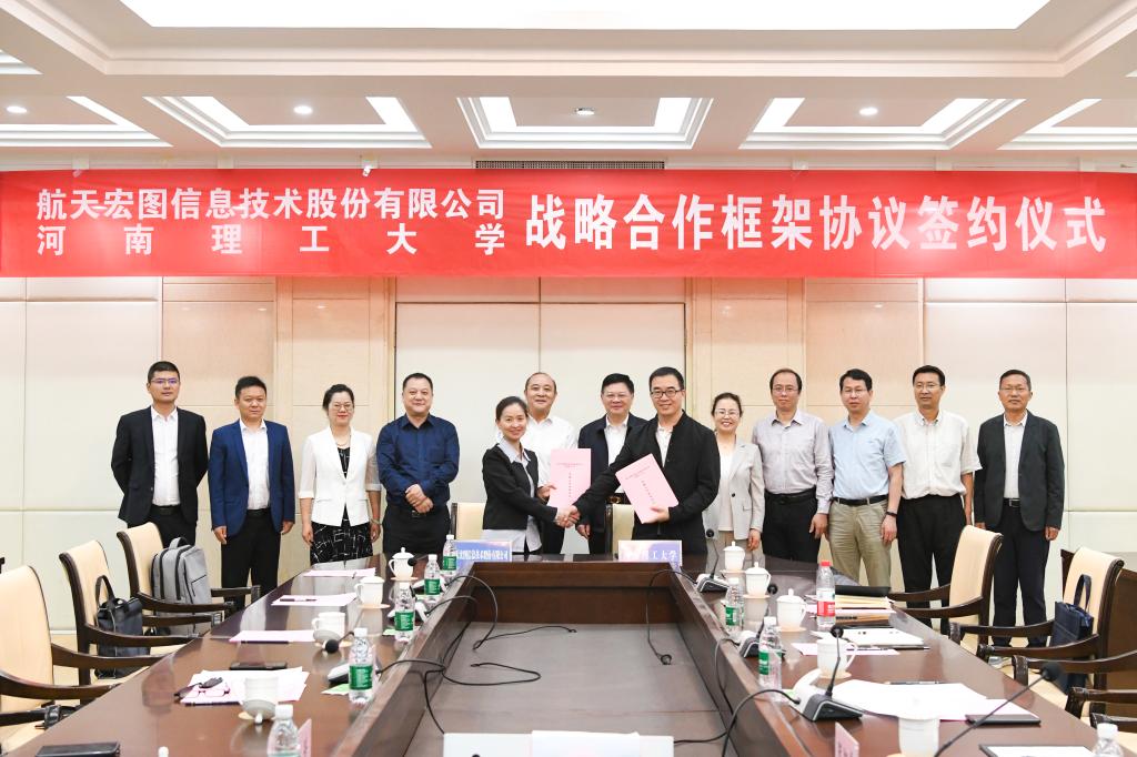 5月29日上午,我校与航天宏图信息技术股份有限公司战略合作框架协议签约仪式在力行楼方形会议室举行。校党委书记邹友峰、航天宏图信息技术股份有限公司执行总裁刘阳等双方有关同志出席签约仪式。
