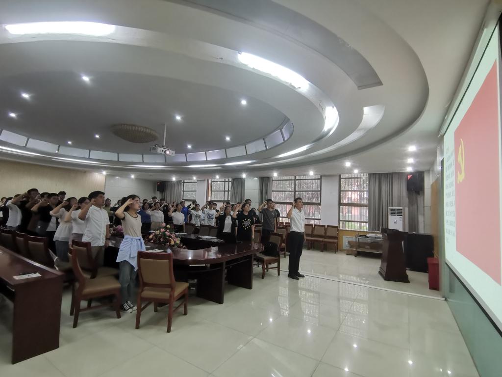党委以迎接建党102周年为契机,在学院一楼会议室举行“同宣誓 共奋进 作表率”新党员入党宣誓活动,学院党委书记张红霞、党委副书记郭学鹏、各学生党支部书记和新发展的91名预备党员参加了会议,会议由组织员李晶晶主持。