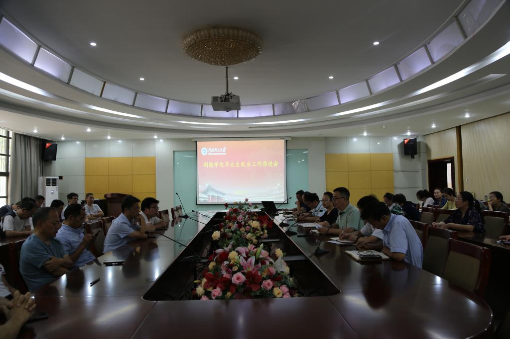于一楼会议室召开毕业生就业工作推进会,院领导班子成员、各系(室)主任、支部书记、毕业设计指导教师和毕业班辅导员参加会议。会议由学院党委副书记郭学鹏主持。