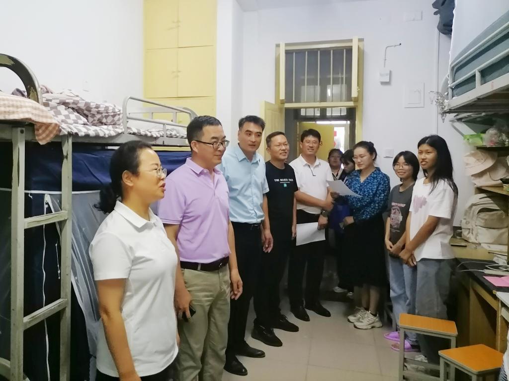 党委书记张红霞、院长袁占良、党委副书记郭学鹏、副院长何荣,在学工办主任丰习才及新生辅导员的陪同下,深入新生宿舍走访慰问。