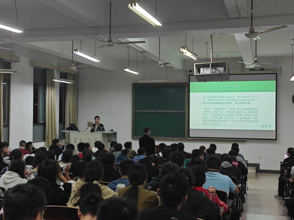 会上,范梦瑶老师带领全体研究生认真学习了“八荣八耻八德”,强调廉洁是为人处世的基本准则之一。随后,范老师进一步在学生中传播廉洁价值观,培育廉洁美德,弘扬廉洁文化。在此期间穿插了多个互动环节,如小组讨论、现场提问等,让学生更加深入地理解和掌握廉洁教育的内容。使同学们思想得到启迪,心灵获取滋养。同时,范老师结合实际生活列举了研究生不廉洁的行为及现象,希望同学们在日后的学习生活中能够敲响思想的警钟。最后,范老师教育引导学生们要树立清廉观,做廉洁诚信,遵纪守法的好公民。同学们纷纷表示今后要以弘扬传统美德、追求美好人生为目标,传播廉洁知识,倡导廉洁意识,养成廉洁行为习惯,将廉洁精神内化于心、外化于行,自觉崇廉尚廉、抵制腐败,在时代的洪流中书写更加精彩的人生篇章。