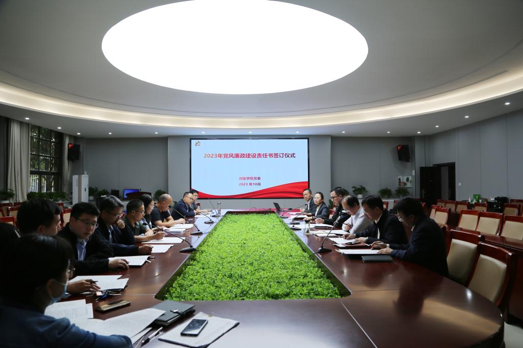 会上,张红霞传达了全面从严治党永远在路上的总要求,并重点对处级党员干部、科室负责人、党支部书记、教师等人,从廉洁用权、廉洁从政、廉洁从教角度为参会人员做廉政风险防控警示教育,阐明了参会人员肩负的党风廉政责任,强调了全方位开展廉政风险点排查重要性,指出全体教职工要立足教育、教学和管理全过履行党风廉政建设责任,共同营造学院党建和事业发展良好政治生态。随后党委书记与党委副书记,党委书记与各支部书记,学院院长与学院副院长,学院院长与各科室负责人,学院副院长、副书记与分管科室负责人签订了2023年度党风廉政建设责任书,全面压实各级党风廉政建设责任和工作任务。
