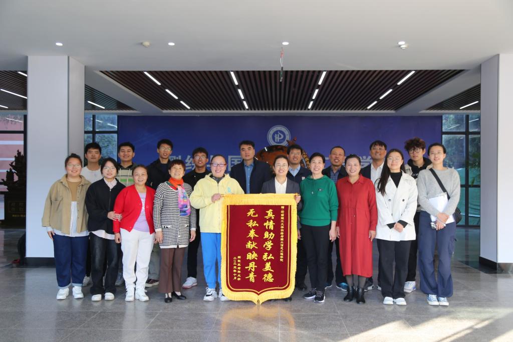 赠送一面绣着“真情助学弘美德,无私奉献映丹青”的锦旗,以感谢午夜剧场