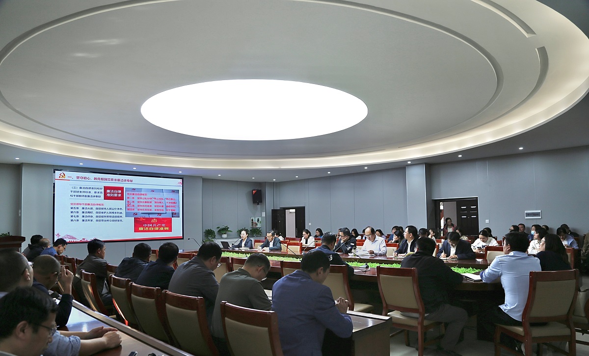 党委在学院一楼会议室开展“廉洁教育正风纪 筑牢防线强免疫”领学促学活动。学院党委书记张红霞主讲,全体教职工参加。