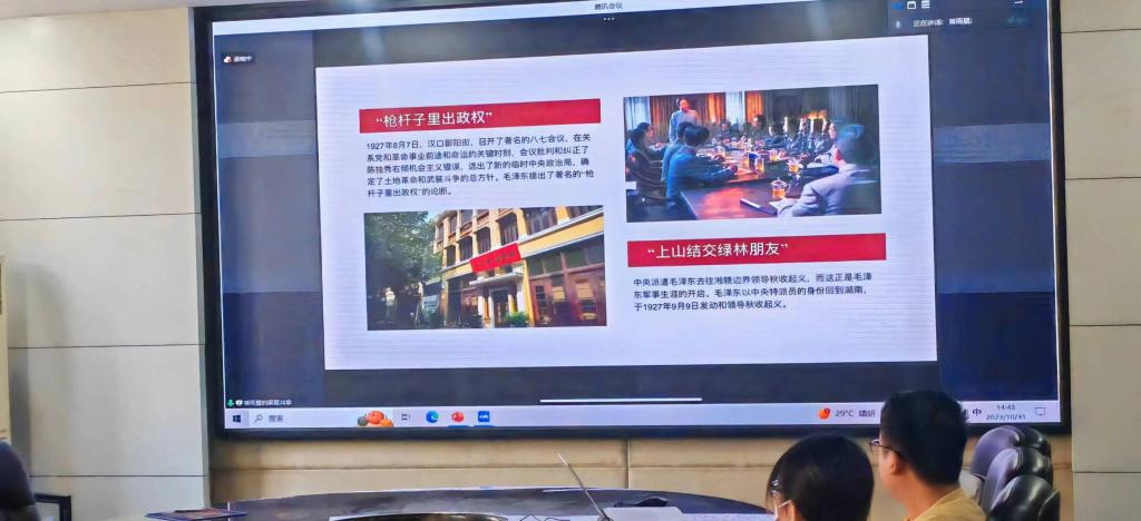 黄雨晨博士首先以井冈山、大别山区、延安三地为线索,串联起了中国共产党的早期历史,重点讲述了发生在这些老区的典型革命故事,如大别山区金寨、红安两县在革命中涌现出的一大批将军的英勇事迹,充分体现了革命老区坚定不移、不屈不饶的革命精神。接着,黄雨晨从历史转入现实,讲述了党的十八大以来,在党中央的正确领导下,全国人民完成了脱贫攻坚的伟大决战,革命老区发生了一些翻天覆地的变化:路通了,学校建起来了,红色资源焕发了新的生机。伟大祖国并未忘记老区,始终关心着革命老区的发展。最后,黄雨晨说老区革命精神历久弥新,不仅体现在革命年代的前辈身上,更体现在新时代的奋斗者中:同时,她鼓励大家细心寻找家乡的革命故事,传承红色基因,赓续红色血脉。