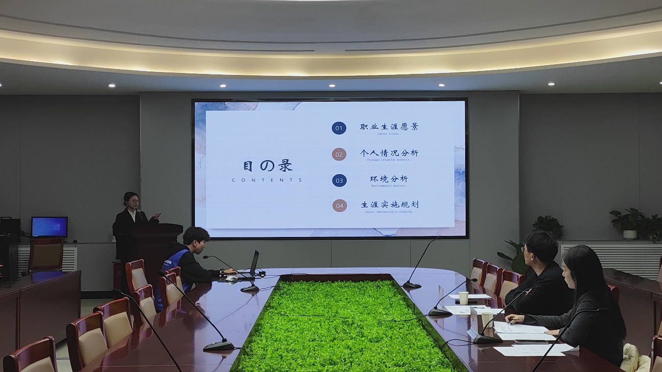 于院楼101成功举办首届大学生职业规划大赛。本次大赛共有12名参赛选手,特邀学工办主任丰习才和辅导员李瑜婷担任评委。