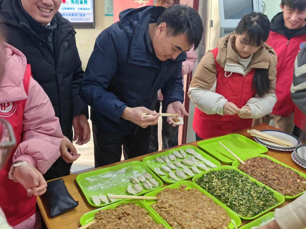 活动前一天,志愿者们便准备好了包饺子所需的面粉,馅料等,将活动现场布置得井井有条。12月22日上午,迎着冬日暖阳,一进梅三公寓大门,饺子的香气便裹挟着过节的喜气迎面涌来。“饺子皮擀薄一点,好吃!”“多包几个肉馅的,我喜欢吃肉!”活动开始之后,同学们的兴奋的声音不绝于耳,大家分工明确,卷起衣袖充满热情地擀面皮,包出了各式各样的饺子。随着躺在托盘中的饺子越来越多,锅中的水也开始翻滚。一个个白胖的饺子逐个跳入滚烫的锅中,蒸腾的水汽使冬日中的梅三大厅变得愈发温暖。饺子出锅后,每位来到现场参与活动的同学都吃到了热气腾腾的饺子,感受到了家的温馨。志愿者还为考研学子、宿管阿姨们以及老师们等送去了饺子,带上了这份冬日里的温暖,送上了来自测绘青协的祝福。随着最后一锅饺子出锅,活动也迎来了尾声,志愿者们认真打扫了活动现场的卫生,保证了宿舍大厅的干净整洁。