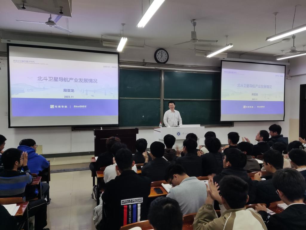 杰出校友代表,段亚龙以《北斗卫星导航产业发展情况》为题,讲解了北斗卫星导航产业发展状况,介绍了在全球迫切需要高质量时空信息保障的背景下,测绘相关技术的运用环境与前景,分享了其在所参与的工程项目中的收获与经验。