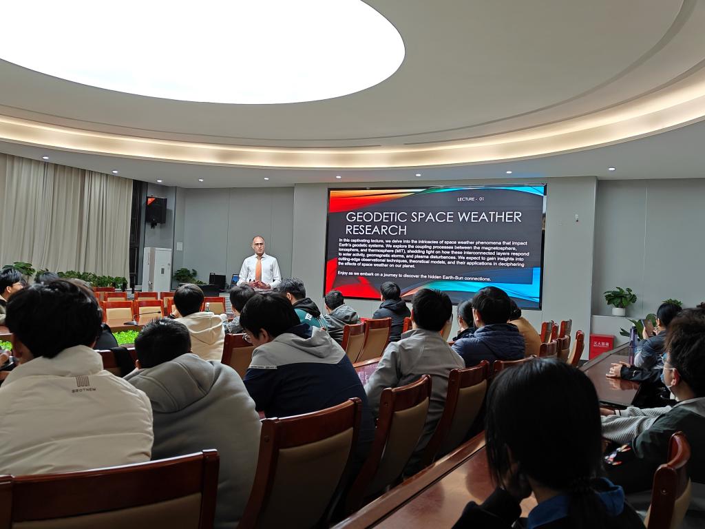 Andy教授首先对近期大家关注磁暴现象进行了解释,引起师生的广泛兴趣。此次报告通过探索磁层、热层和电离层之间的耦合过程,阐明这些相互连接的层如何响应太阳活动、地磁风暴和等离子体扰动,同时在本次报告中还介绍了前沿的观测技术、理论模型及其对地球的影响。