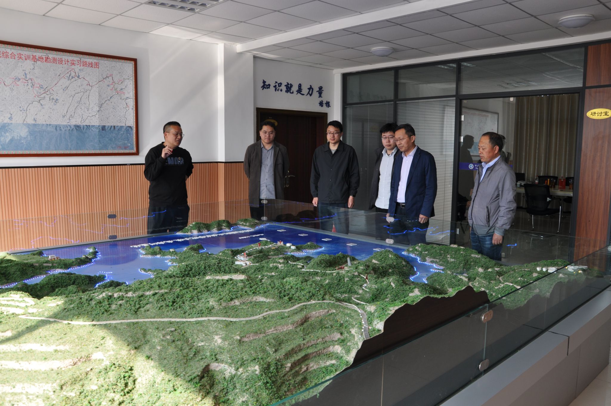 一行的到来表示了热烈欢迎。交流会后,何荣一行在万拥军的陪同下,考察了小浪底实训基地的教室、机房、学生宿舍、餐厅等基础设施,详细了解基地可容纳人数、所开展的实训项目、实训路线设置等情况,并前往基地各教学点进行实地考察。