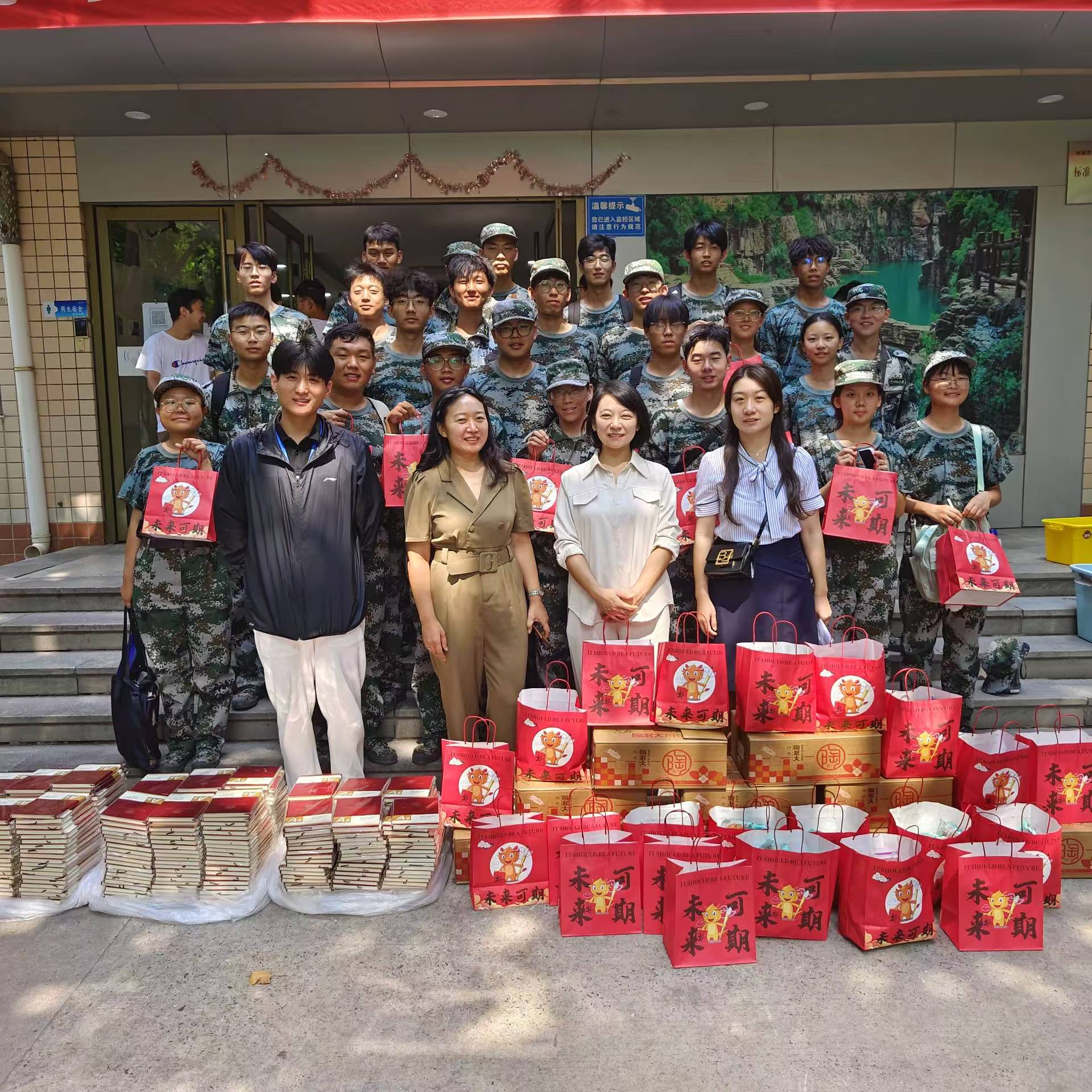 在梅园3号宿舍楼下,开展“军训淬炼青春,中秋慰问暖心”活动,该院党委副书记王雷霞,带领辅导员为2024级军训新生进行中秋慰问。