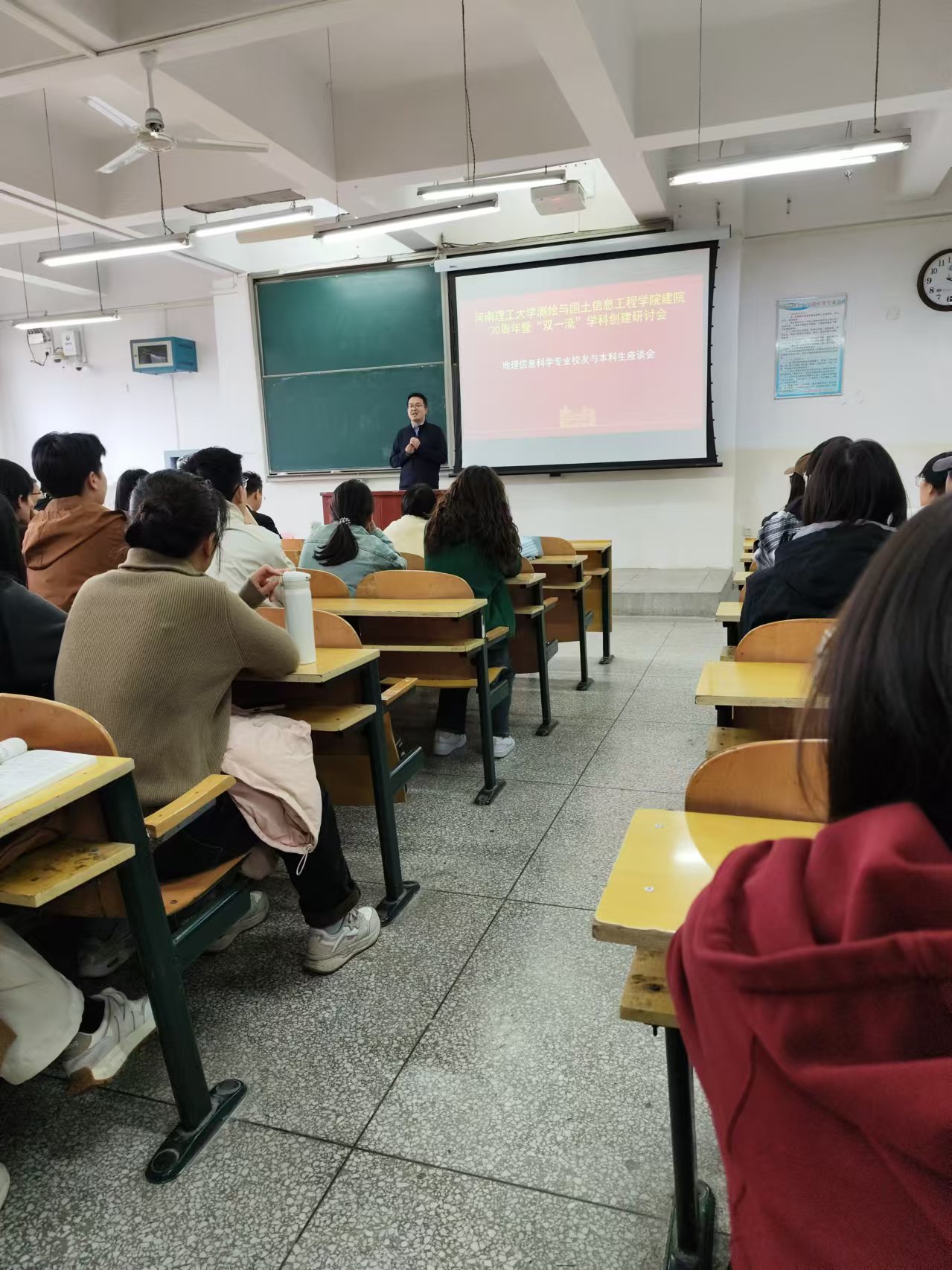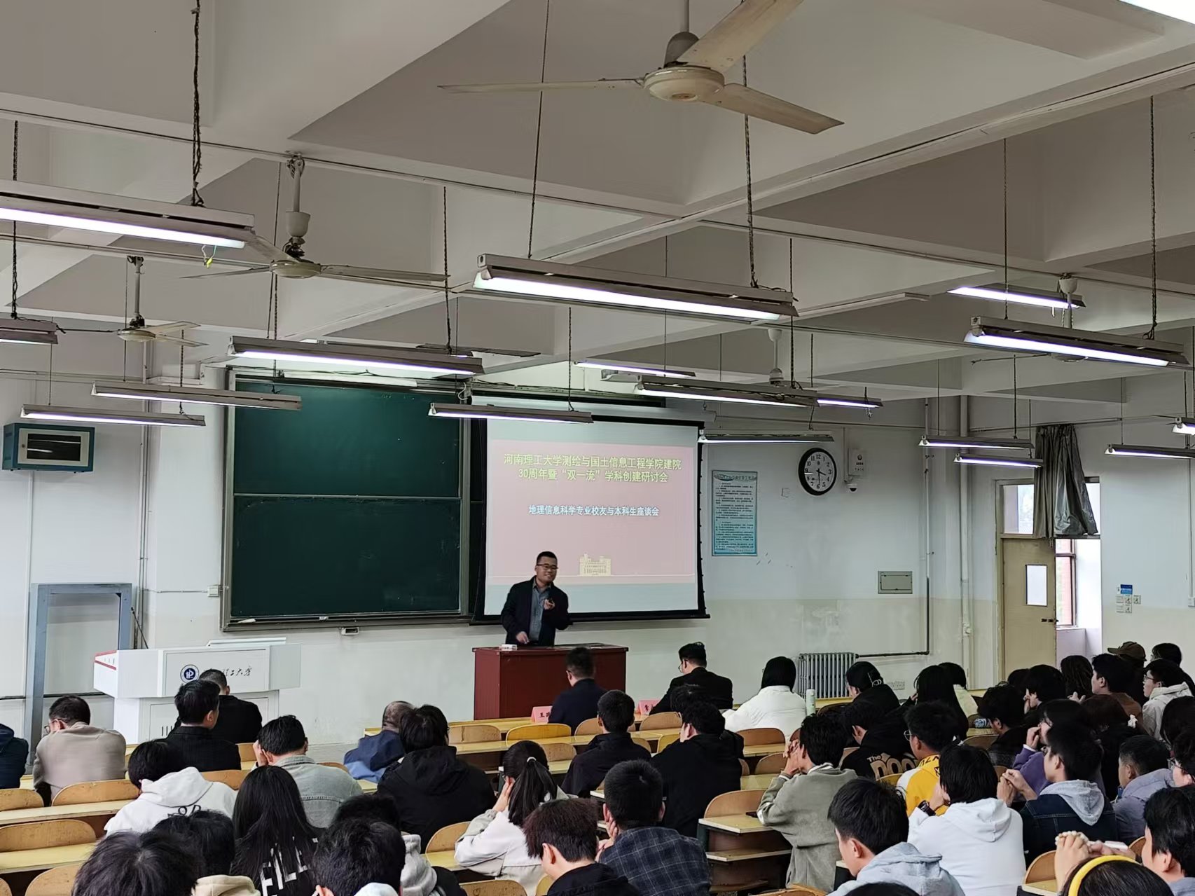 在培养方案修订研讨会上,三位校友与地信系教师进行了充分交流。校友们根据行业发展前景和当前课程设置,建议增设操作系统和地理数据处理方面的人工智能算法等课程,以更好地增强学生培养与社会发展需求之间的契合程度。与本科生座谈会上,王世东主任代表地理信息科学系师生对校友们的归来表示热烈欢迎,对校友们长期以来对母校、学院的关心支持表示衷心的感谢。三位优秀校友依次上台为同学们分享自己的学习经验和工作经历。针对同学们提到的专业未来发展方向、考研与就业选择等问题,三位校友根据自身经历提供了详细深入的指导。座谈会上同学们积极参与交流,气氛轻松活跃,起到了良好的沟通效果。