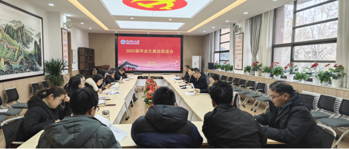 在二楼会议室召开2025届毕业生就业促进会。党委书记张红霞、院长袁占良、全体副院长以及各系党支部书记、系主任、学工办主任、毕业班辅导员、2021级学业导师长、就业专员等老师们参加了会议。会议由学院党委副书记王雷霞主持。
