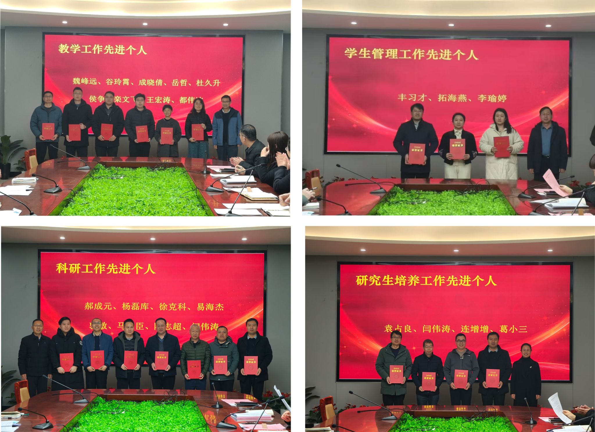 结合学院过去一年各个方面工作开展情况和取得业绩,本次表彰大会主要分为教学、科研、研究生、学生管理等不同类别,学院领导逐一宣读了获奖名单、为获奖教师颁发证书,并合影留念。随后,袁占良院长作大会讲话,充分肯定了过去一年全体师生的辛勤付出和卓越贡献,向午夜剧场