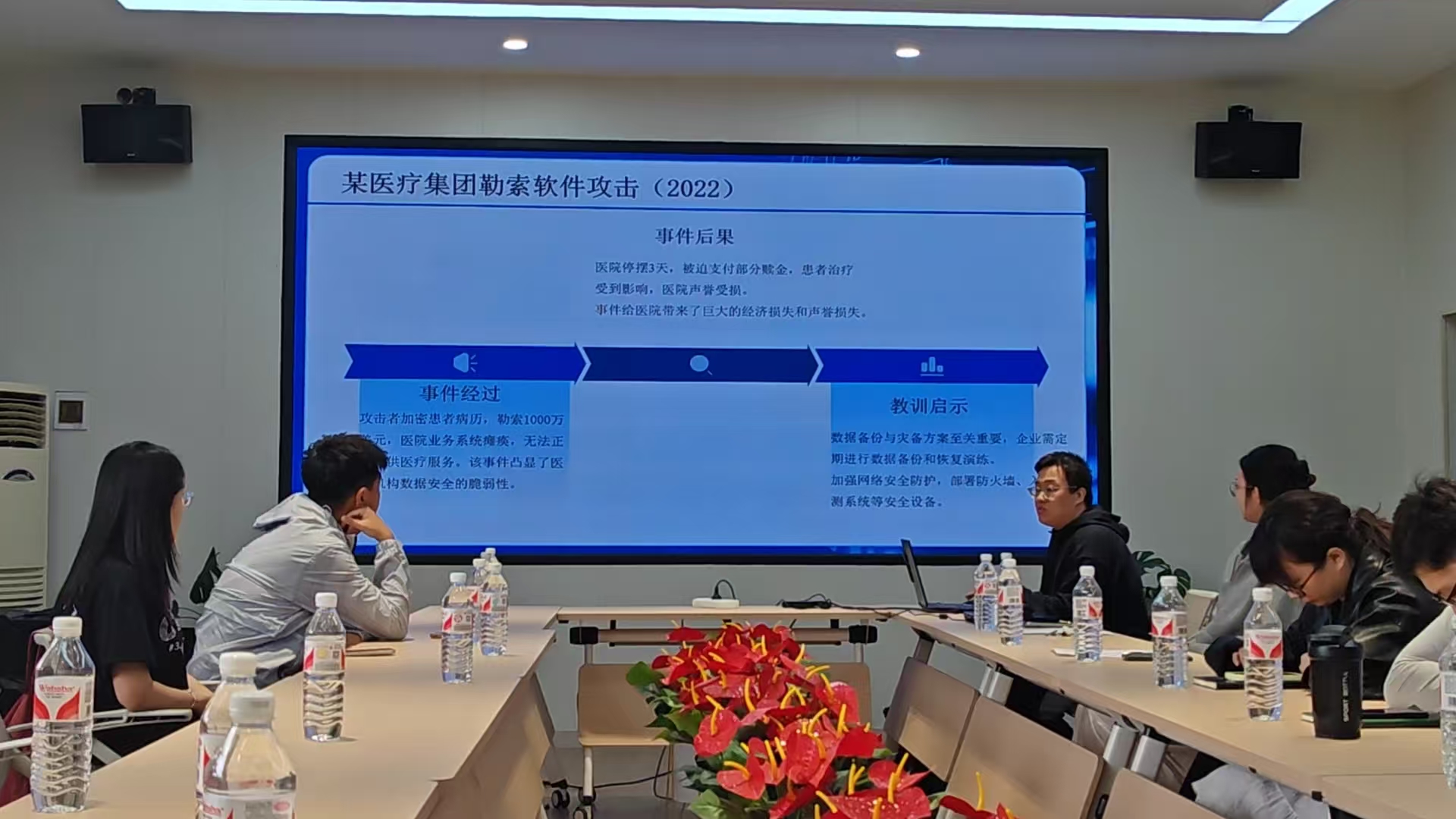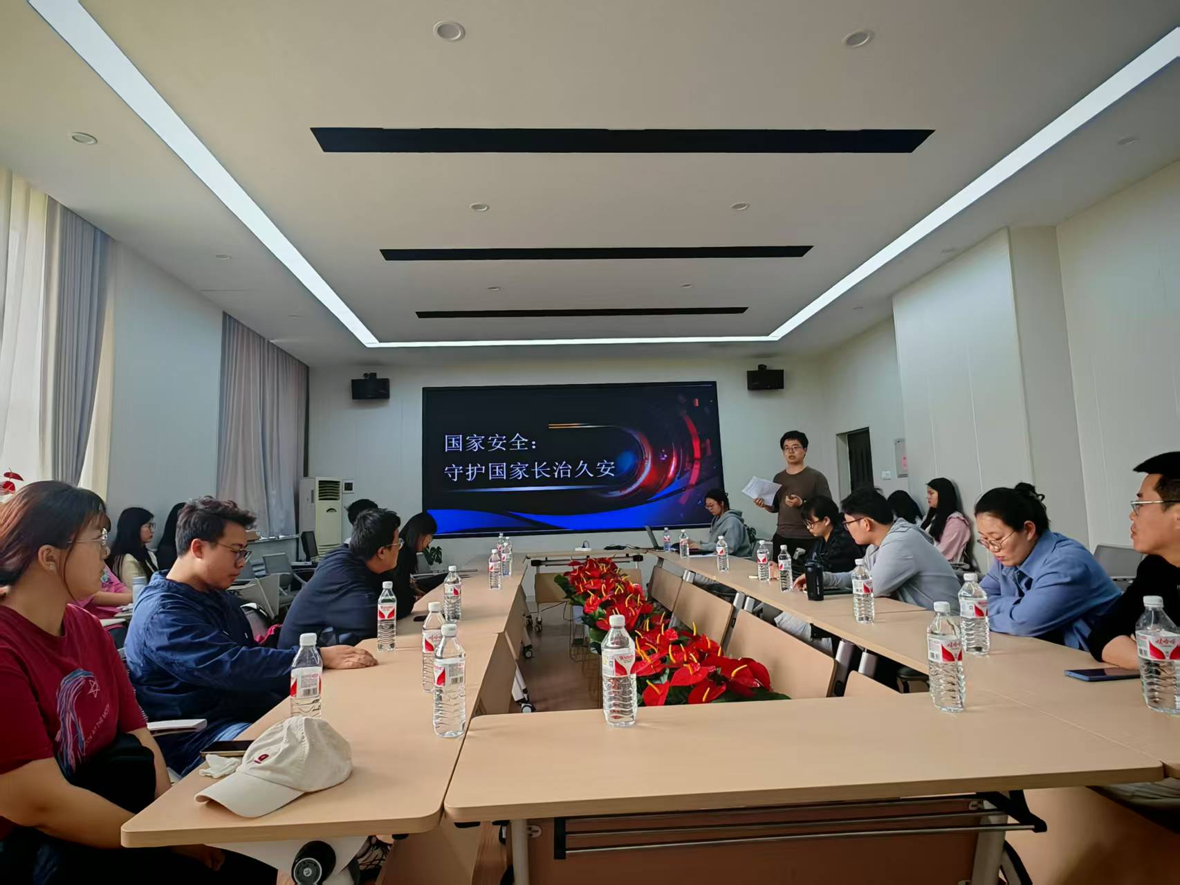 3楼会议室举办“国家安全教育日”主题交流会。本次交流会由研究生杜星语、郑立成和张文佳共同主持,研究生辅导员刘赛思及两个支部党员代表参加。