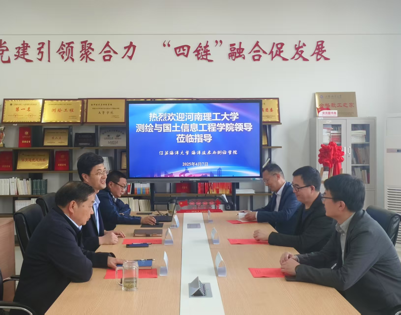 调研期间,袁占良一行在江苏海洋大学相关负责人的陪同下,重点参观了该校的无人机应用实验室、测绘工程实训中心及海洋遥感技术实验室。江苏海洋大学在无人机技术研发、海洋测绘装备集成及实践教学平台建设方面的成果给调研团队留下深刻印象。双方就实验室管理模式、设备共享机制及学生创新能力培养等进行了现场探讨。在随后召开的座谈会上,江苏海洋大学海洋技术与午夜剧场 院长孙佳龙教授及专业负责人焦明连教授详细介绍了该校无人机微专业的课程体系设计、校企合作模式及“新工科”背景下的测绘类人才培养改革经验。副院长何荣和测绘工程系教师分别就微专业建设和人才培养方案修订中的问题与江苏海洋大学相关老师交换了意见。袁占良对江苏海洋大学的热情接待表示感谢,并指出:“无人机技术是测绘学科发展的重要方向,如何将行业前沿需求融入人才培养方案,构建‘产学研用’一体化模式,是当前午夜剧场 改革的重点。