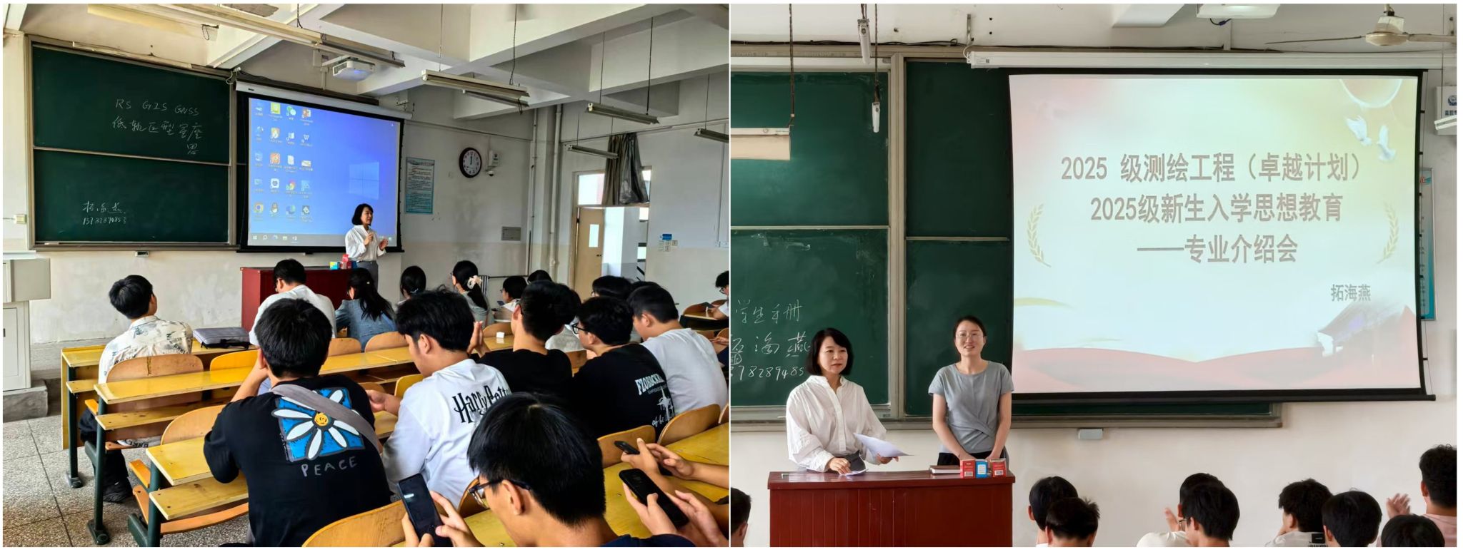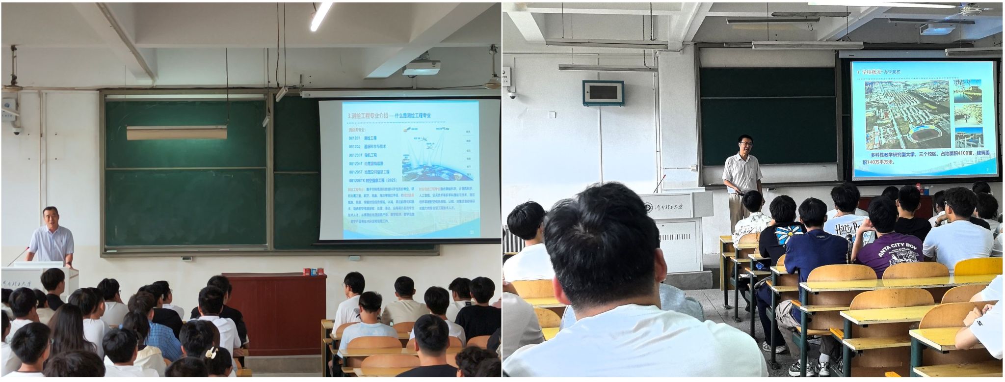 测绘工程系特别邀请了在学科领域深耕多年的魏峰远教授与李克昭教授,为新生们带来了一场关于学院发展历程与学科建设成果的专题讲解。两位老师分别结合自身丰富的教学与科研经历,从学院的历史沿革、师资力量、人才培养体系,到测绘学科的发展现状、前沿方向进行了全面且细致的介绍。同时,他们也对新生们提出了殷切期望,鼓励大家珍惜大学时光,树立明确的学习目标,培养严谨的科学态度和创新思维,为测绘事业的发展贡献青春力量。新生们认真聆听、积极记录,并展开了热烈互动,现场学习氛围浓厚。