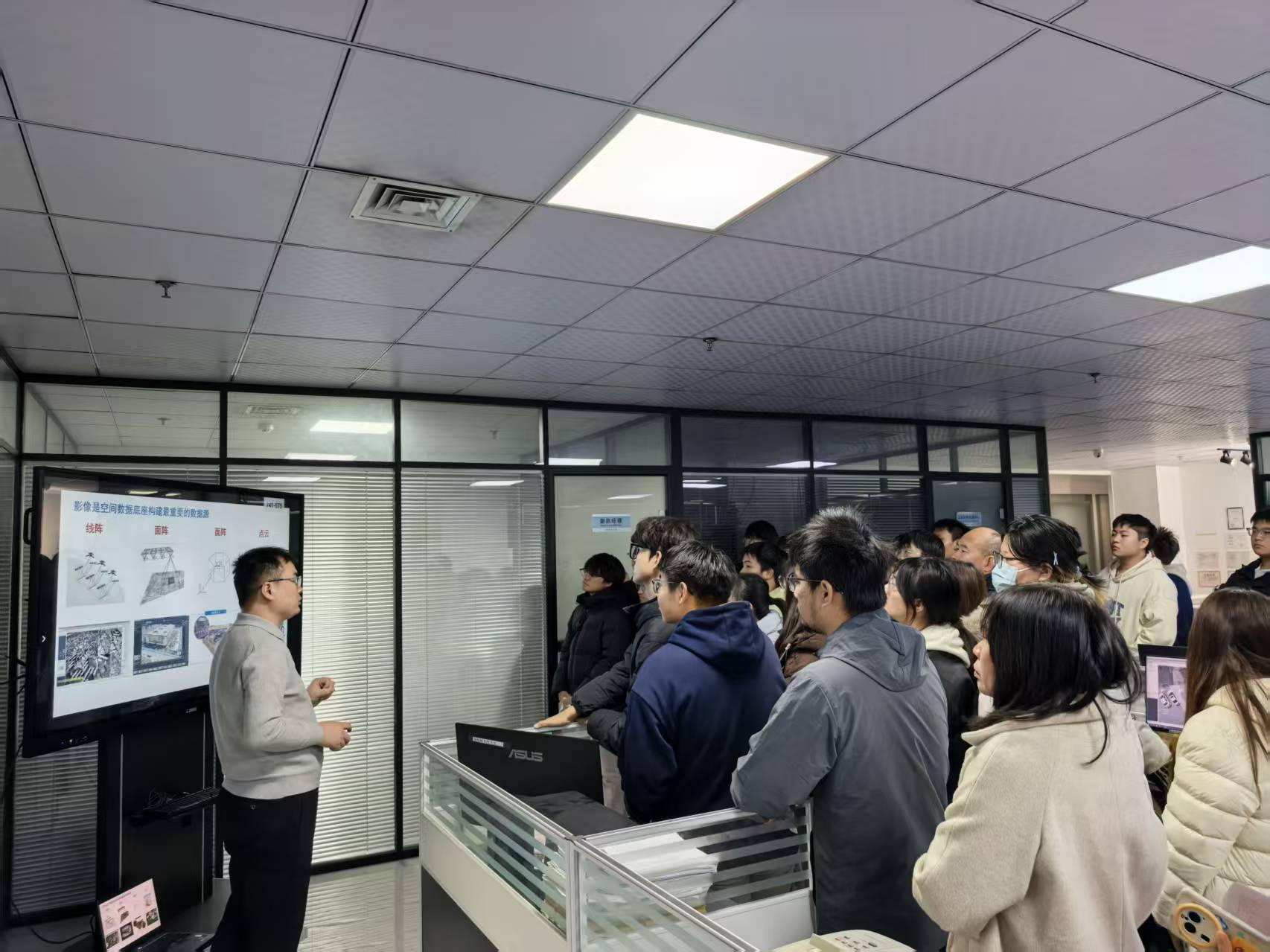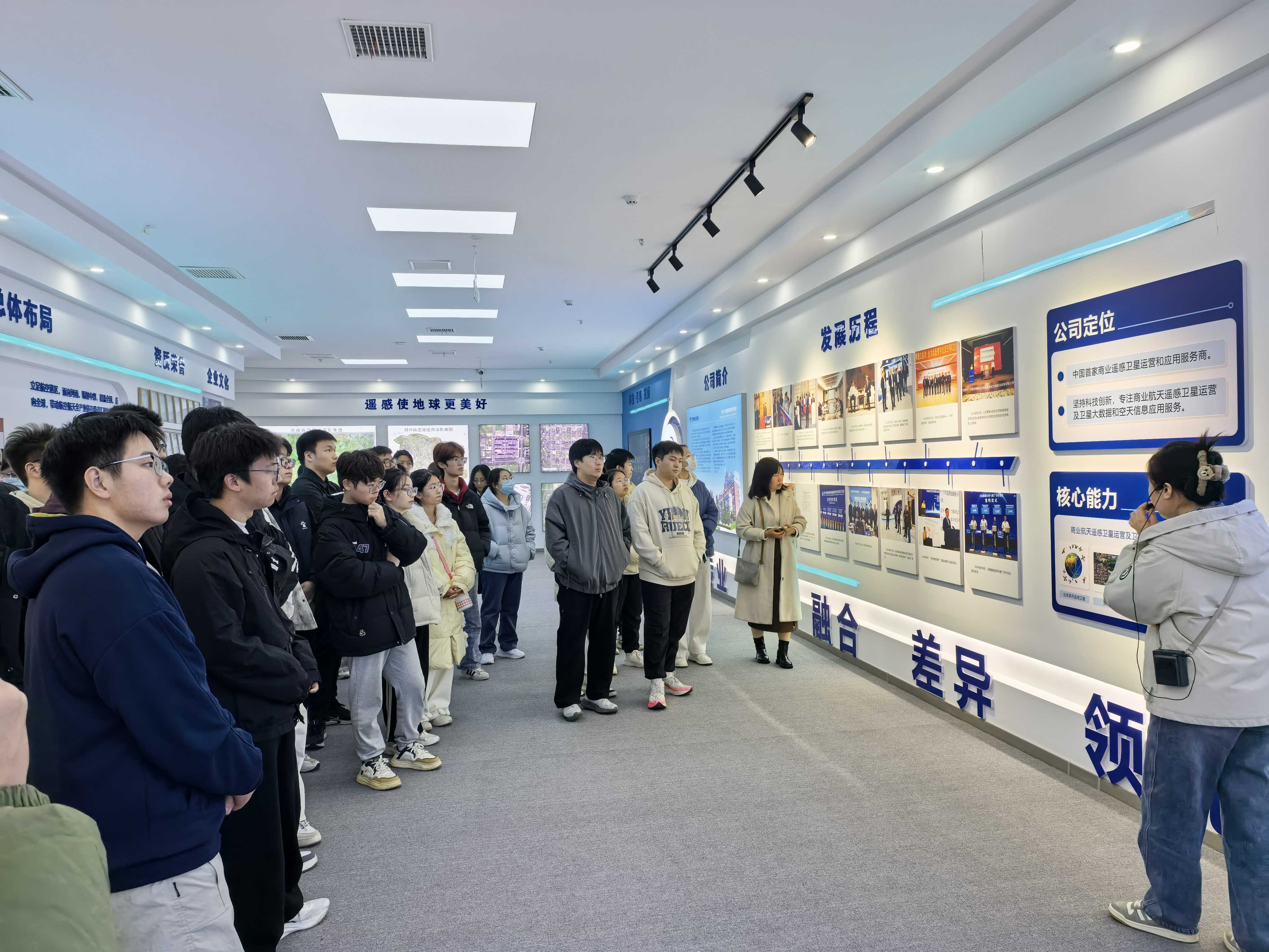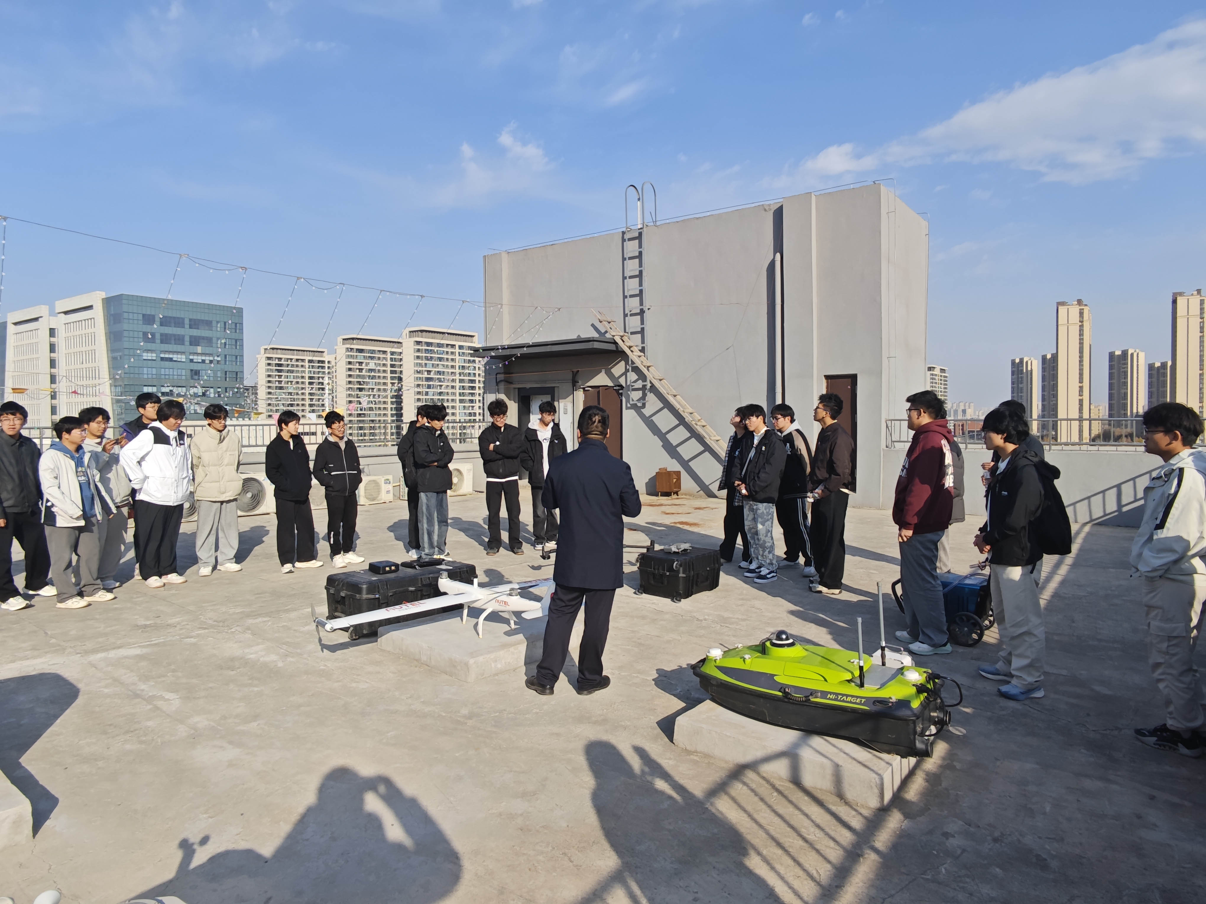 在鑫诚数智信息科技(郑州)有限公司,同学们近距离观摩了无人机在行业应用与低空经济中的创新实践,体会到GIS技术赋能传统产业转型的广阔前景。在河南世纪园科空间技术公司,技术人员重点展示了“郑州航空港号”卫星影像及0.5米高精度三维建模成果,从二维到三维的一体化处理技术,令同学们对空天信息技术体系有了全新认知。在河南华祥测绘科技有限公司,负责人阐释了“硬件+服务”一体化的全流程测绘解决方案,使学生认识到地理信息行业不仅需要技术能力,更需具备将技术转化为实际价值的综合素养。参观过程中,企业负责人与学生进行了深入细致交流,他们一致指出,随着数字经济与生态文明建设的深入推进,地理信息行业正迎来黄金发展期,亟需具备扎实理论、技术实战能力和创新意识的高素质人才,并鼓励同学们在校期间夯实编程、遥感与GIS开发等核心技能,主动参与项目实践,为未来职业发展筑牢根基。