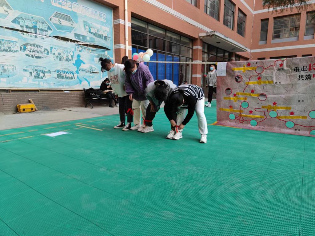 此次运动会分团体赛和个人赛,团体赛的项目有搭桥渡河、红军过草地、重走长征路、负重前行四个项目。红军过草地比赛中,同学们用绳子将自己的一条腿和另一位同学的腿绑在一起,四个人排成一排,相互扶持,一起喊着口号,艰难前进,宛如当年革命同志们手挽着手,为了心中的目标勇往直前,毅然决然走向危险的沼泽,还原了当年红军过草地的场景。个人赛的项目有听歌识曲、送鸡毛信、勇炸碉堡、党史问答,当一首首红色的歌曲回荡在操场上,当年的一幕幕景象仿佛出现在了眼前,特别是当“我和我的祖国”的旋律响起,同学们几乎同一时刻哼唱着这首歌曲,爱国主义的精神此刻流淌在每个人心中。赛场上,运动健儿们激情飞扬、奋力拼搏,工作人员追踪记录着比赛进程,拍下了一个个精彩的瞬间,整个场面热闹非凡,精彩纷呈。