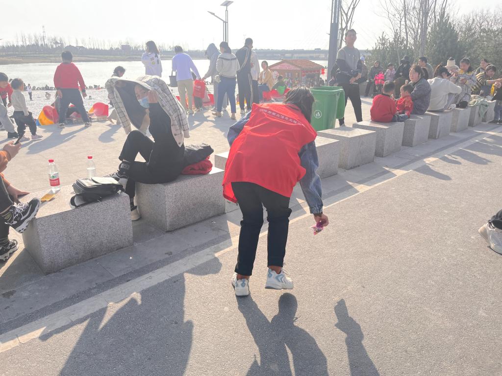 下午两点,志愿者们有序来到大沙河生态公园。志愿者们分为两组,一组同学搭建临时志愿者服务平台,向过往行人宣传雷锋精神。另一组同学戴好手套,手持环保袋、夹子等工具对公园内的白色垃圾进行捡拾,并对乱丢垃圾等不文明现象进行劝导。志愿者们以平凡朴实的行动,传承和弘扬了雷锋精神,宣扬了保护生态环境的重要性。