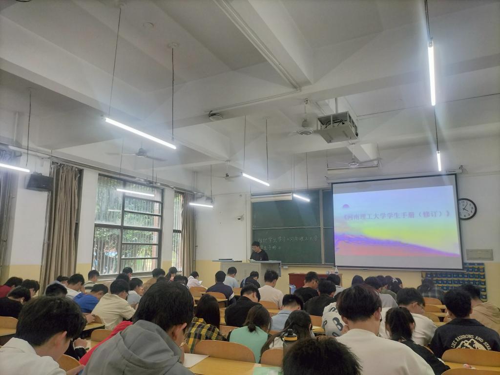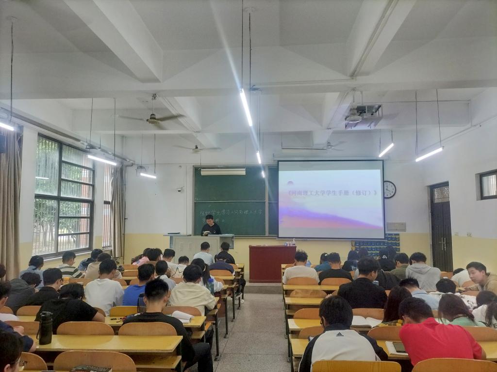 活动伊始,由测绘工程(卓越计划班)2202班的团支书李嘉豪作为主持人讲述了本次活动的内容和目的,并强调了遵规守纪的重要性。接着,李嘉豪带领大家一起学习《学生手册》内容,细致入微地阐述了综合评定、违纪处分、学生管理、学籍管理、资助奖励等方面的内容,使同学们充分了解到学校的各项规章制度和要求,受益良多。在讲解过程中,同学们认真听讲,并将重要内容做了记录。