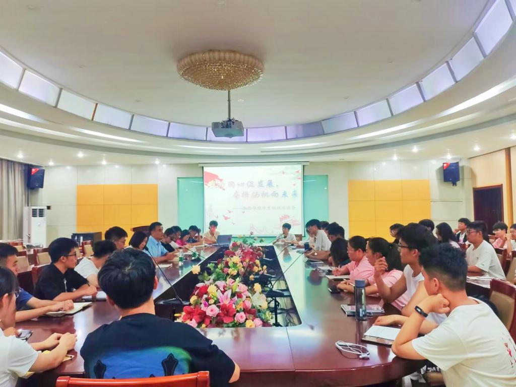 于6月17日下午在院楼101会议室召开团学干部座谈会。学院党委副书记郭学鹏、团委书记李静出席会议。院学生会、院团委、院青年志愿者协会、院青年宣传中心、班长联席会各学生代表共50余人参加会议。会议由团委书记李静主持。