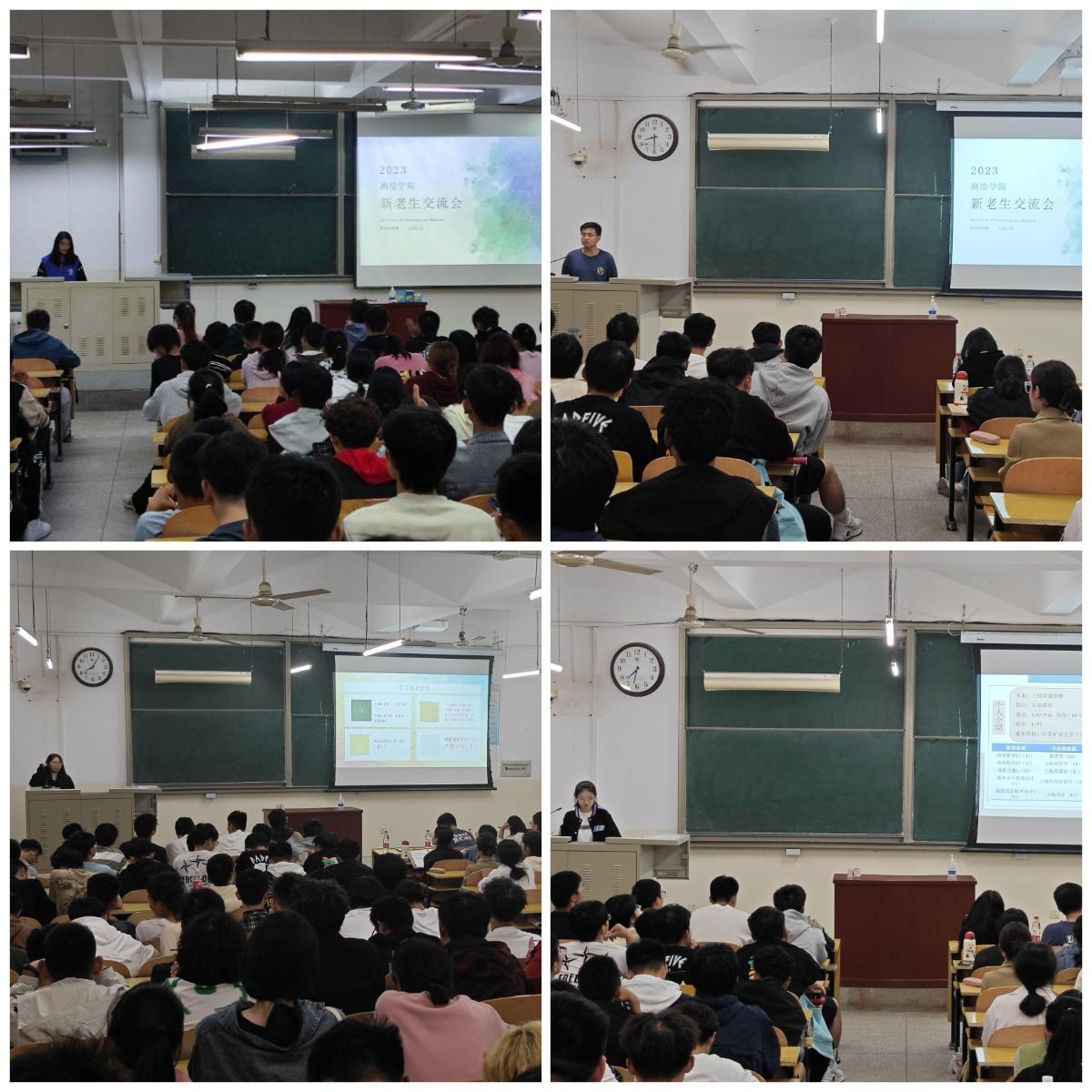 于院楼301、401、402教室召开23级新老生交流会活动。本次活动由9名本科优秀学生代表及赵志坤、梅新宇、姜自豪等研究生代表为同学们交流分享经验。23级全体学生参加。