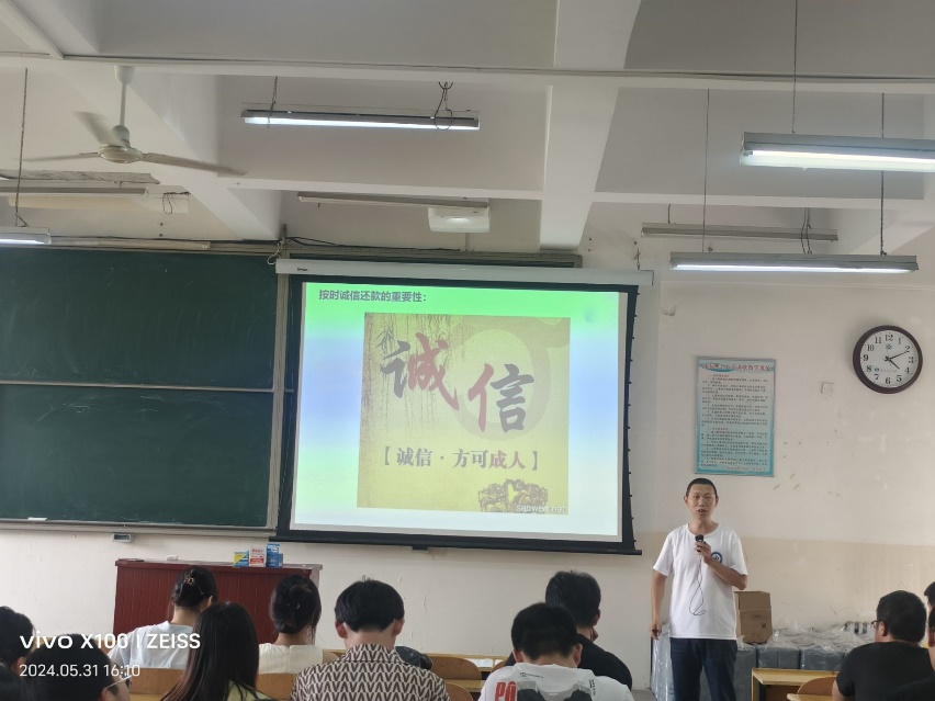 开展2024届毕业生贷款知识再学习及诚信教育,活动由贷款专员胡佰林主持。