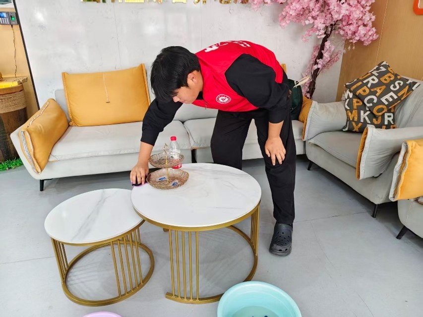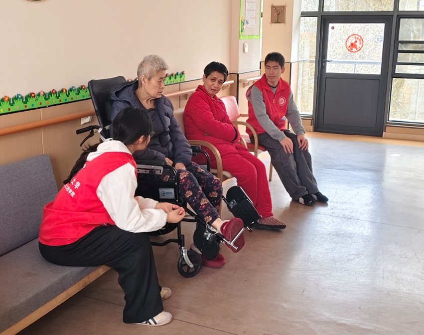 活动前期,志愿者主动对接养老服务中心负责人,详细了解老人生活状况、兴趣爱好与实际需求,高效完成方案策划、物资筹备、场地协调等筹备工作,同时通过线上线下渠道宣传,号召全院同学积极参与志愿服务,传递对老年群体的关怀与敬意。活动中期,志愿者抵达后迅速分组协作,分成三个小组有序开展服务。一组志愿者认真打扫中心公共区域与老人房间,打造整洁舒适的居住环境;其余小组围坐老人身边,亲切交谈、悉心陪伴,耐心倾听老人的人生经历与生活感悟,分享校园趣闻。温馨的互动驱散了老人的孤独感,现场暖意融融。活动结束后,志愿者有序整理物资,与老人亲切道别、合影留念,及时梳理活动心得与老人反馈,以细致负责的行动,展现了新时代青年学子的责任担当。
