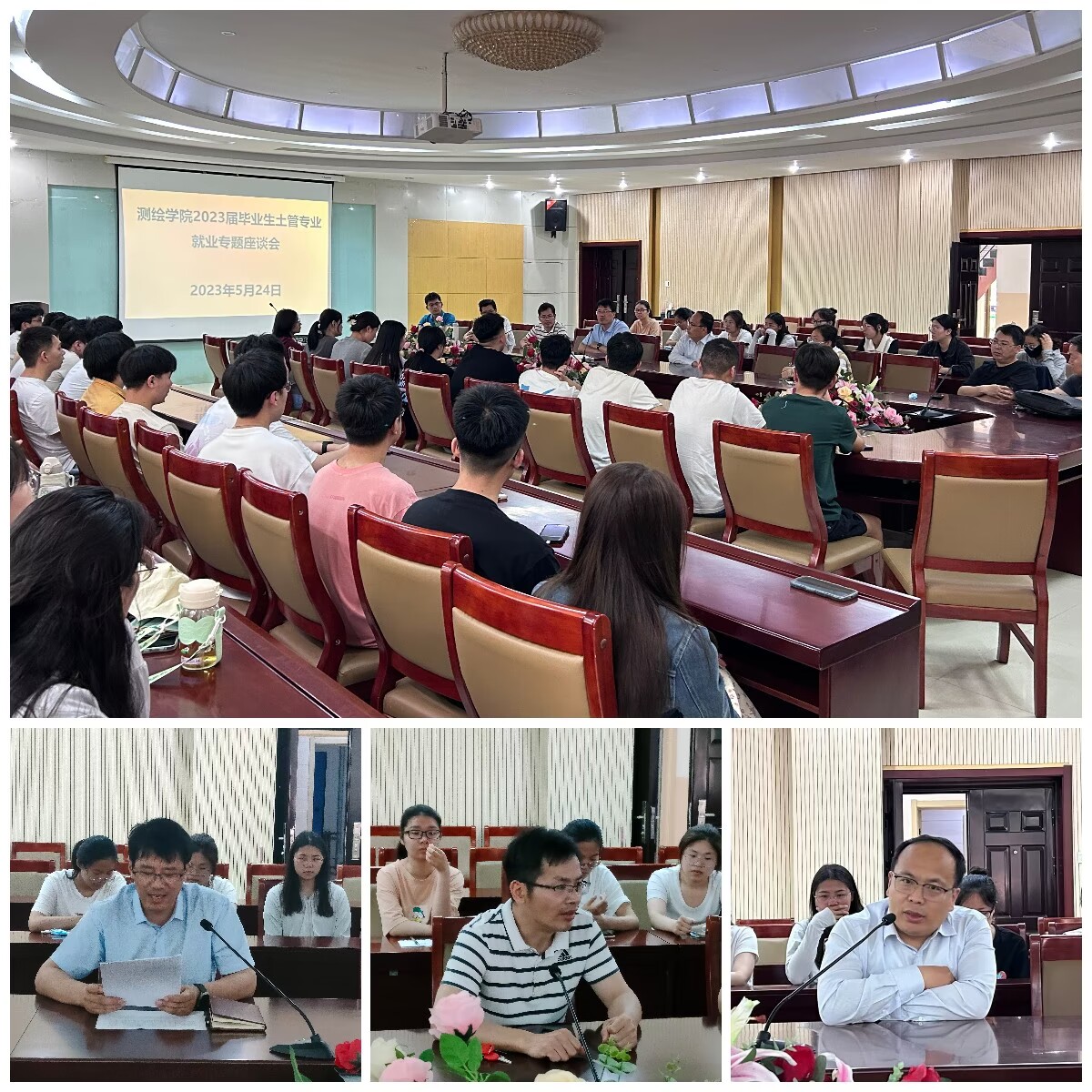 土地资源管理专业2023届毕业生就业专题座谈会在一楼会议室举行,学生工作办公室主任丰习才、土管系副主任傅建春、系全体任课教师及2023届毕业生参加会议,会议由傅建春主持。