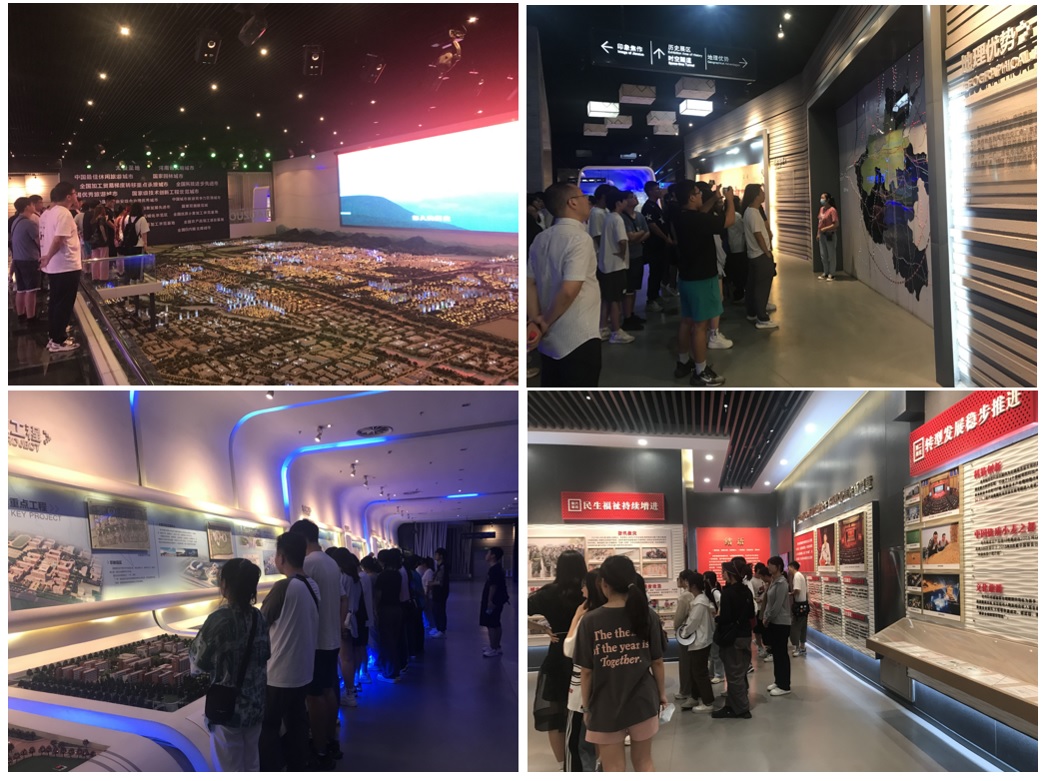 在国家方志馆南水北调分馆和焦作市党群服务中心,实习指导组精心设计了“南水北调文化和焦作精神”现场思政课堂,全体师生共同学习了南水北调工程以及焦作城区段总干渠征迁和建设过程,一起感受 “人民至上、协作共享”的国家精神,以及“艰苦奋斗、创新求精”的工程建设精神,感受焦作人民“特别能战斗”的革命斗争精神。在焦作市城市规划展览馆,全体师生通过现场参观和讲解,了解城市特色和规划历程,感受焦作人民在党的领导下波澜壮阔的建设和改革伟大历程。在中国非物质文化遗产当阳峪绞胎瓷展示馆和生产基地,通过观看微视频和参观生产线,感受精益求精的工匠精神以及科技对产业发展的重要作用。