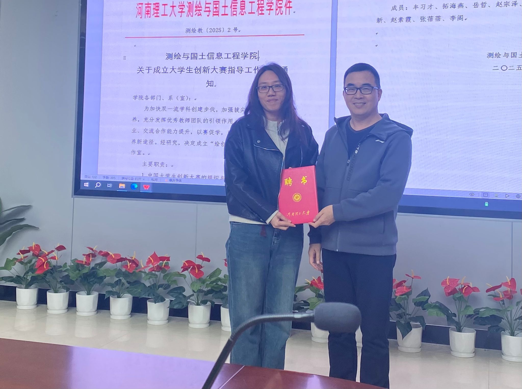 何荣首先介绍了午夜剧场 学科竞赛取得的丰硕成果,宣读午夜剧场 “绘创行”大学生创新大赛指导工作室成立文件,明确工作室的管理章程。袁占良院长为成晓倩老师颁发大学生创新大赛指导工作室主任聘书,指出学院对工作室的成立高度重视,鼓励其积极发挥平台作用,利用自身优势,整合竞赛资源,通过组织师生参加比赛和培训,提升教师的赛事指导水平,提高学生的创新创业能力,加快双一流学科创建步伐。