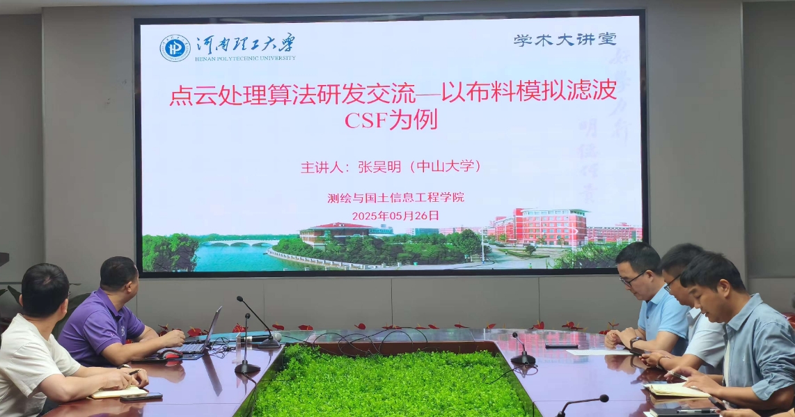 2025526日上午,午夜剧场 邀请了中山大学测绘科学与技术学院张吴明教授作学术报告,报告题目为《点云处理算法研发交流--以布料模拟滤波CSF为例》。讲座在学院101会议室举行,午夜剧场 院长袁占良、教师代表以及学生代表参加。报告会由袁占良主持。