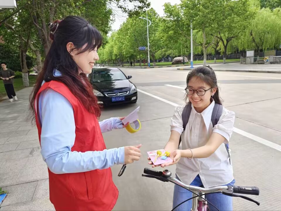 此次活动设置明信片留言、知识问答和发放爱心礼物等方式,吸引广大同学们积极参与。活动中,参与者在明信片上写下对他人的祝福与激励,并进行有关释放压力和心理调节的知识问答,既传递快乐又增长知识,提升心理健康意识。志愿者们积极与参加者互动,并为每个参加活动的同学献上一份甜蜜的小礼品。志愿者把收集到的祝福明信片和棒棒糖一起随机在校园各处送给偶遇的同学们,收到这一惊喜的同学们纷纷收获一份温暖与感动,真正将爱心和快乐传播开来。