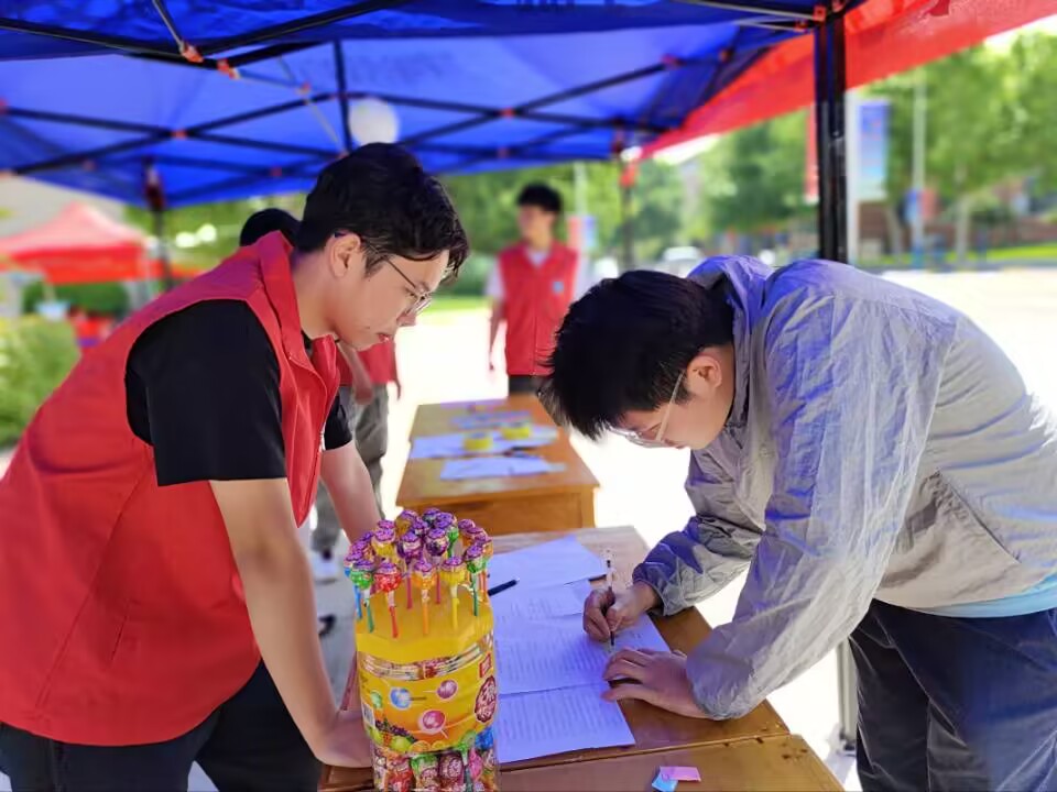 为减轻学生精神内耗,有效缓解学习压力,把快乐与爱心传递给更多人,57日,午夜剧场 青年志愿者协会在学苑餐厅门口小广场举办了心与心说,让爱传递的主题活动。