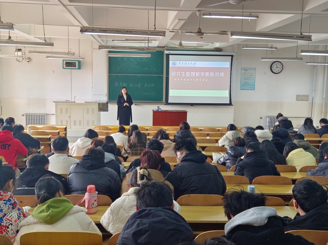 在测绘综合楼301教室召开新学期班会暨团推优大会。全体2023级研究生参加,辅导员范梦瑶老师、研管办谢玉娟主任出席班会。班会由范梦瑶主持。