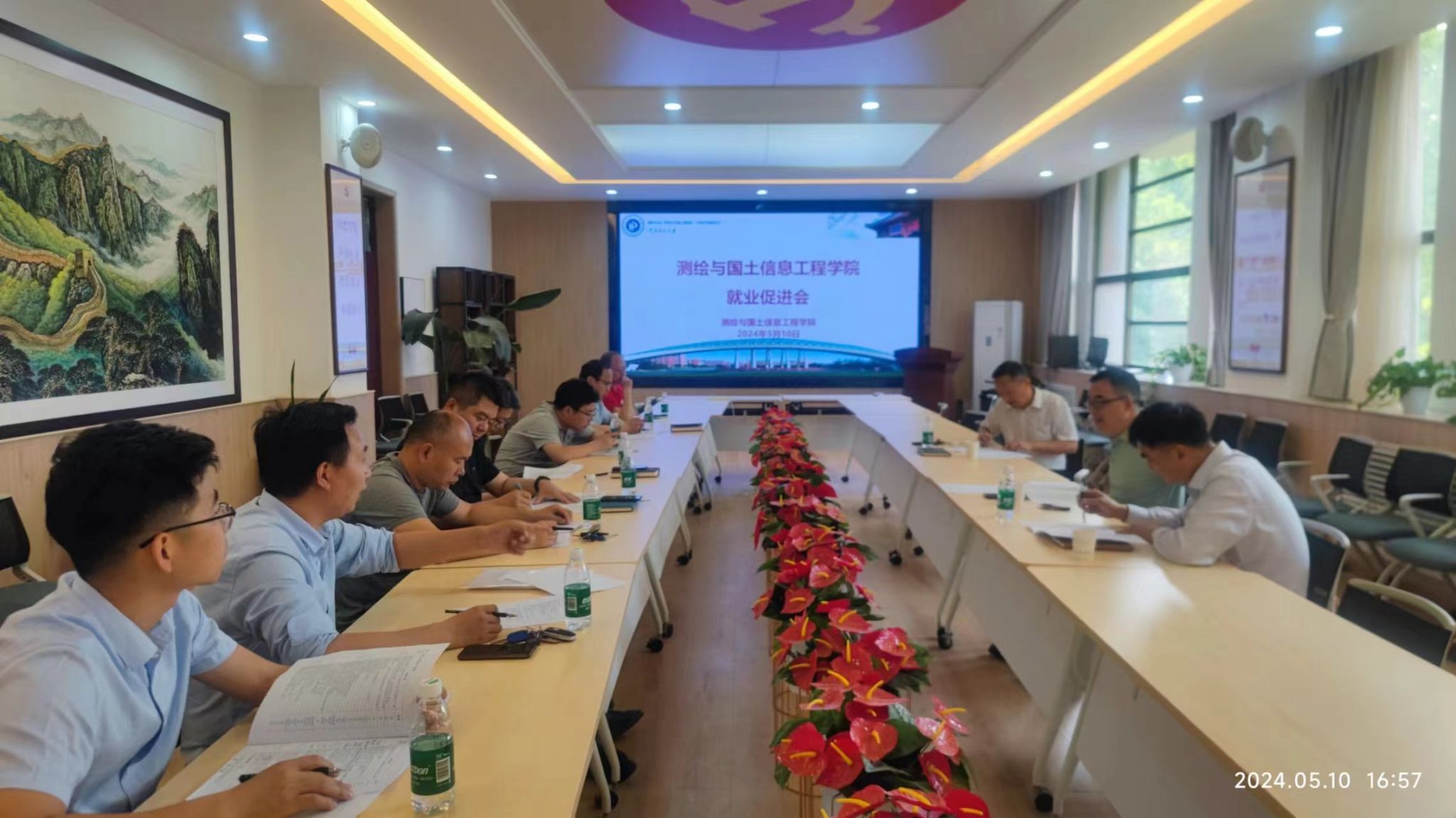二楼党建会议室召开2024届毕业生就业工作促进会。学院领导,各系主任、党支部书记,教科办、学工办参加会议。